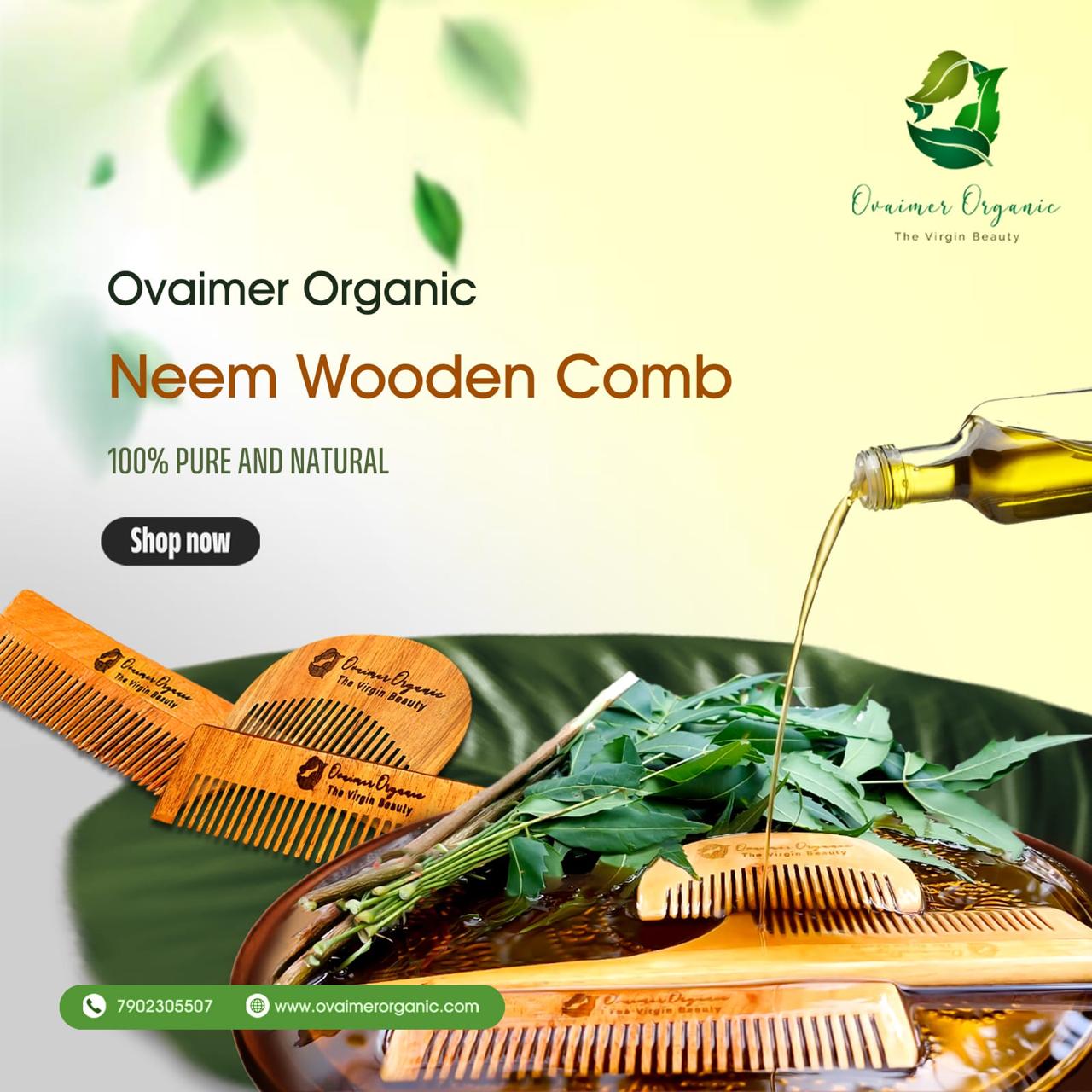 Ovaimer Organic NEEM COMBS treated with oils & herbs for maximised scalp stimulation. Made of young neem wood, these combs deliver nutrition of neem & herbs to scalp, with every stroke of combing.